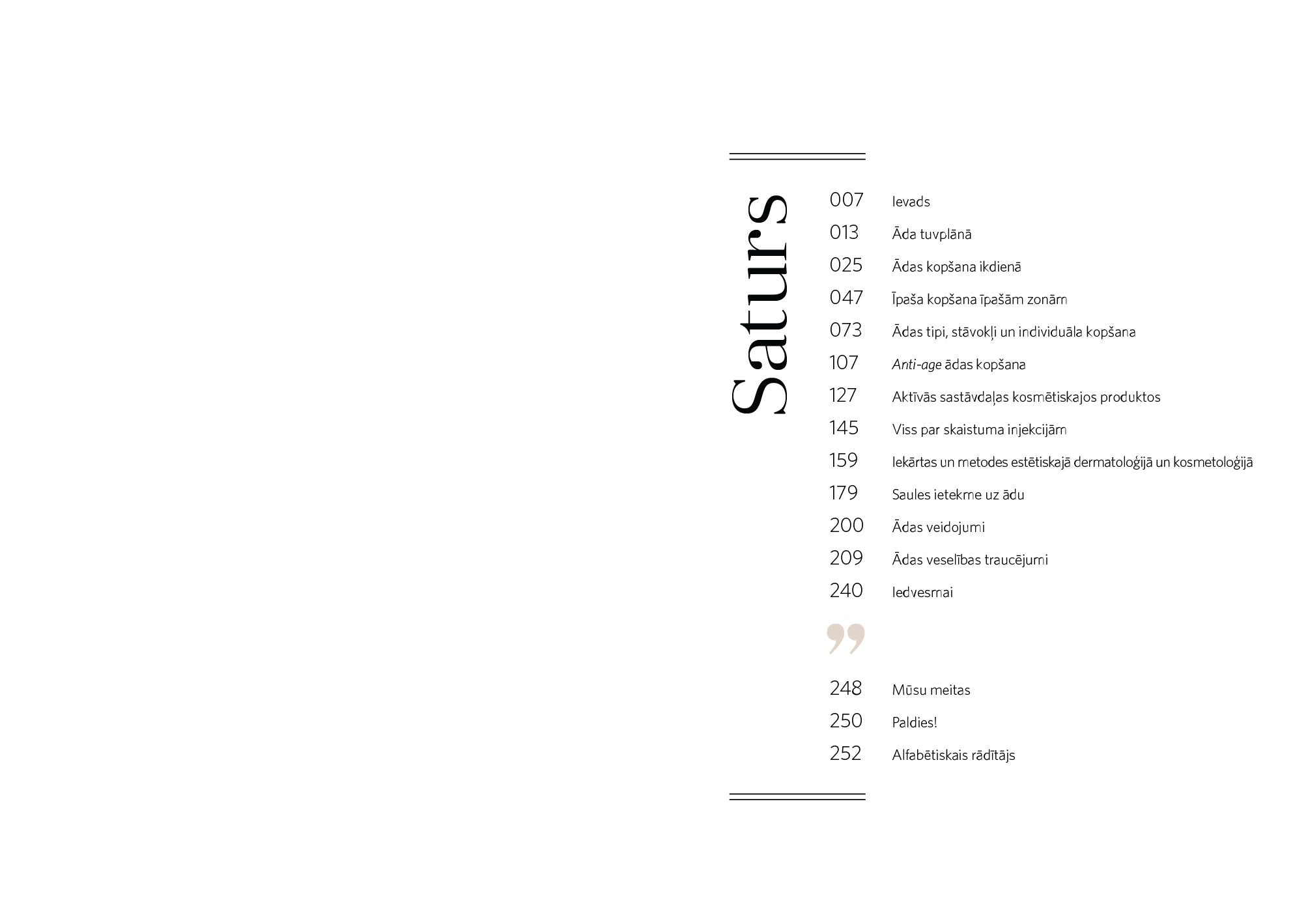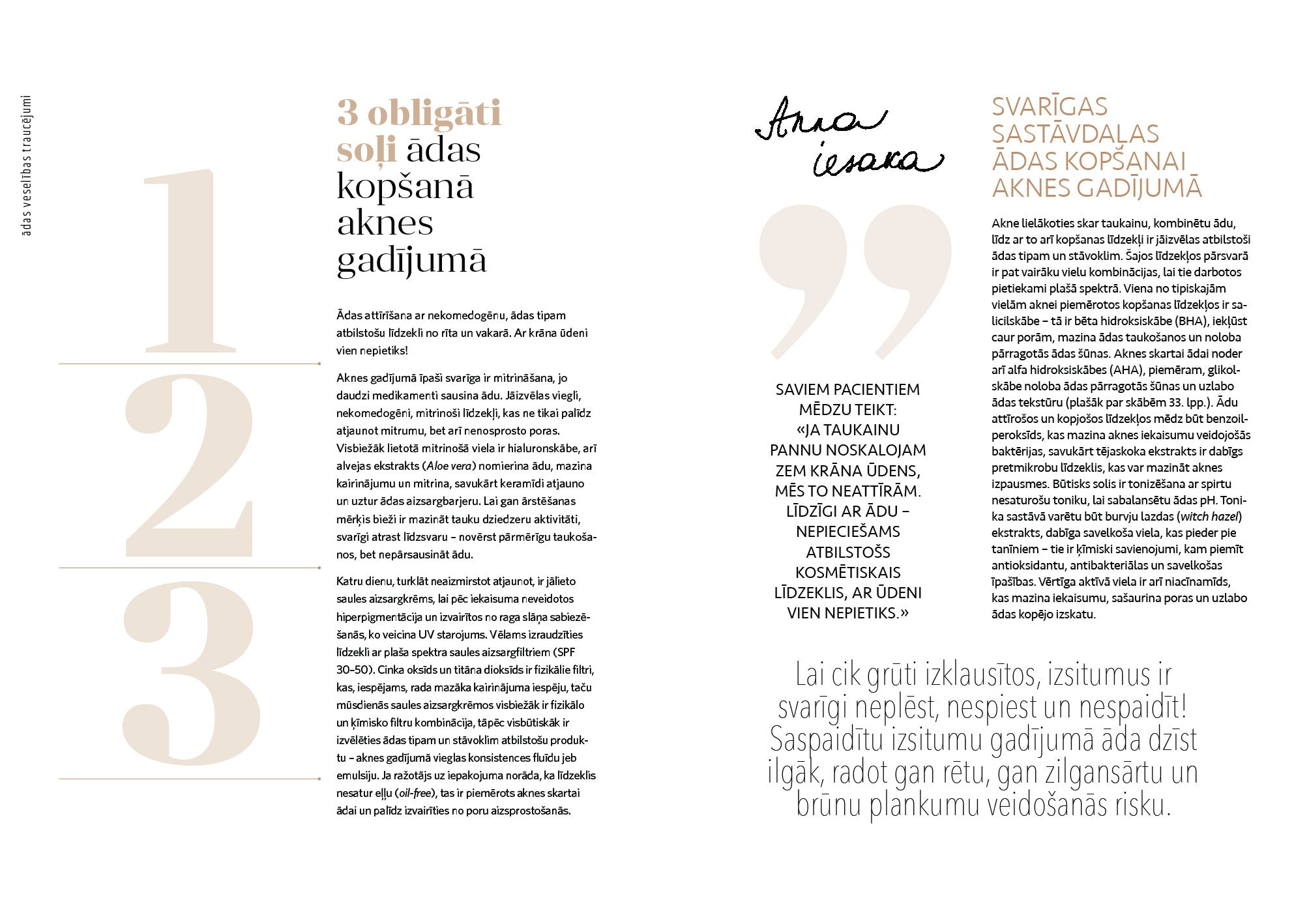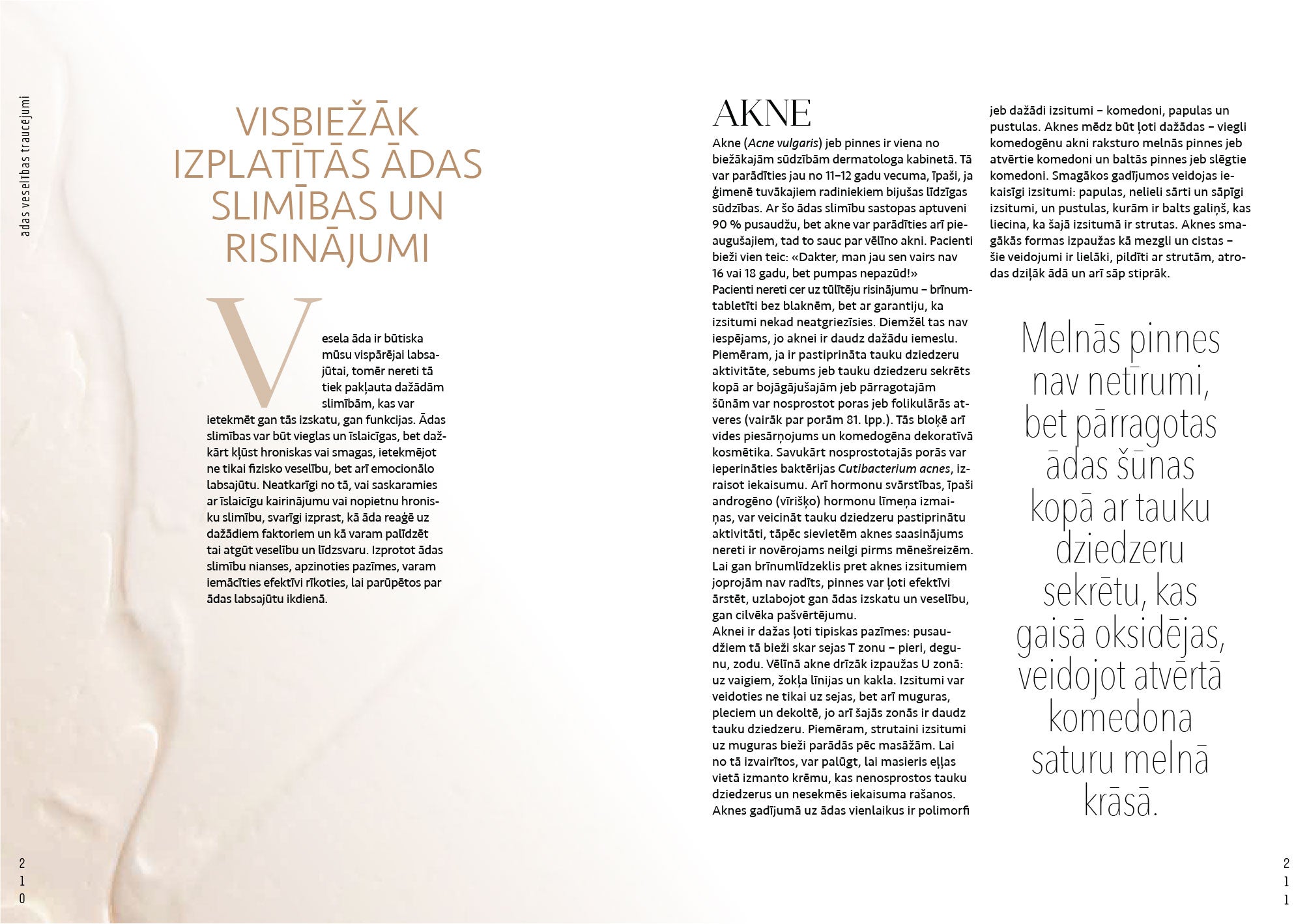 "Grāmata sniedz plašu ieskatu par ādas veselību un skaistumu. Sākot ar ādas anatomiju un biežākajām slimībām, beidzot ar modernākajām ārstēšanas metodēm."